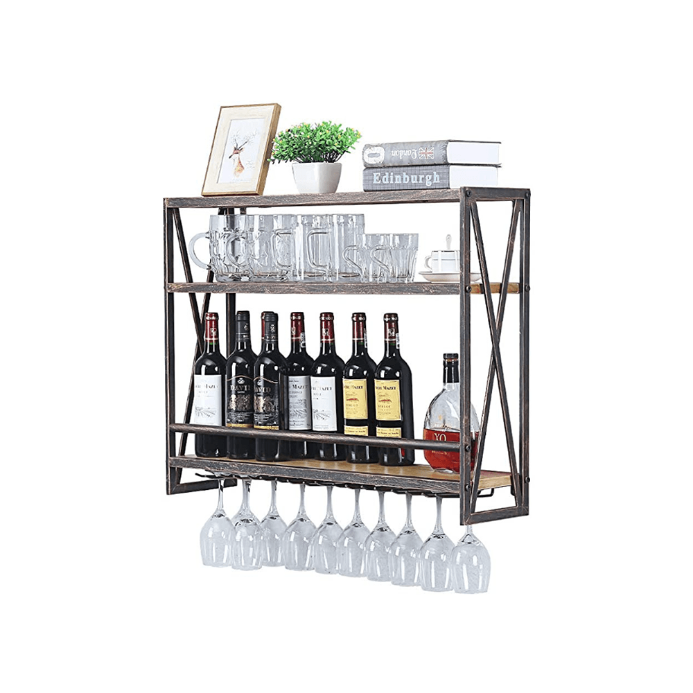 Pipe Shelves - [3 Tier - 31.5in - Black Brush Red Coper] - 100% Natural Solid Wood - Industrial Wine Rack Wall Mounted, Wall Wine Rack